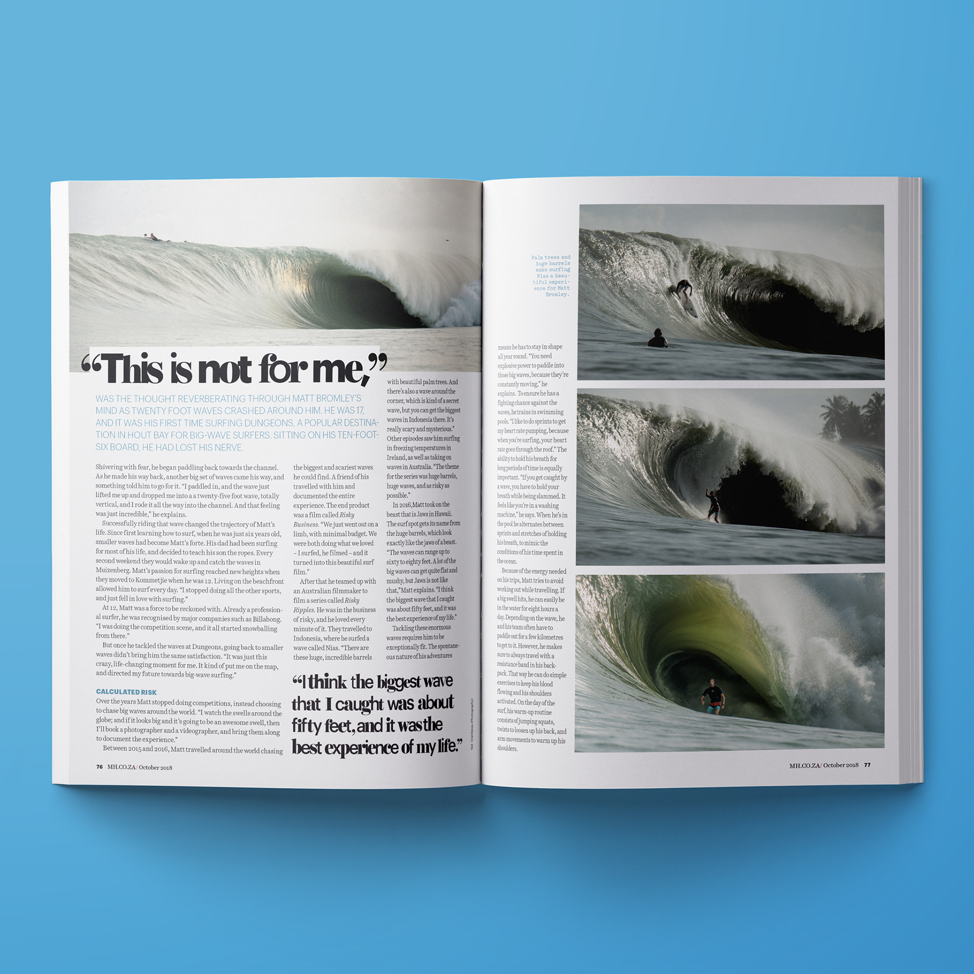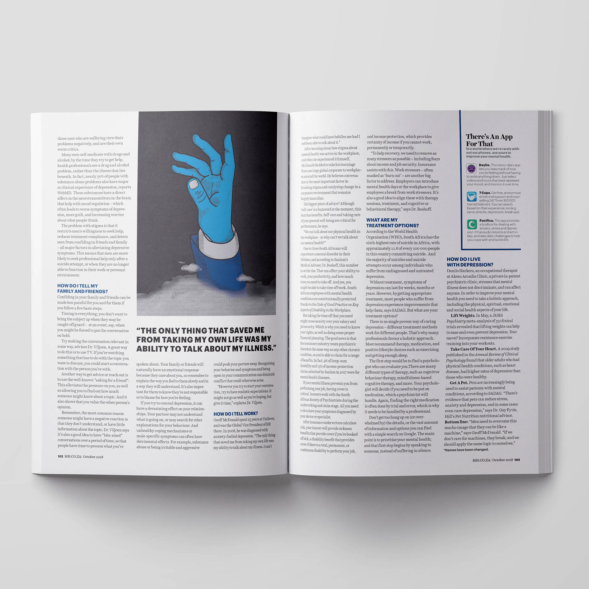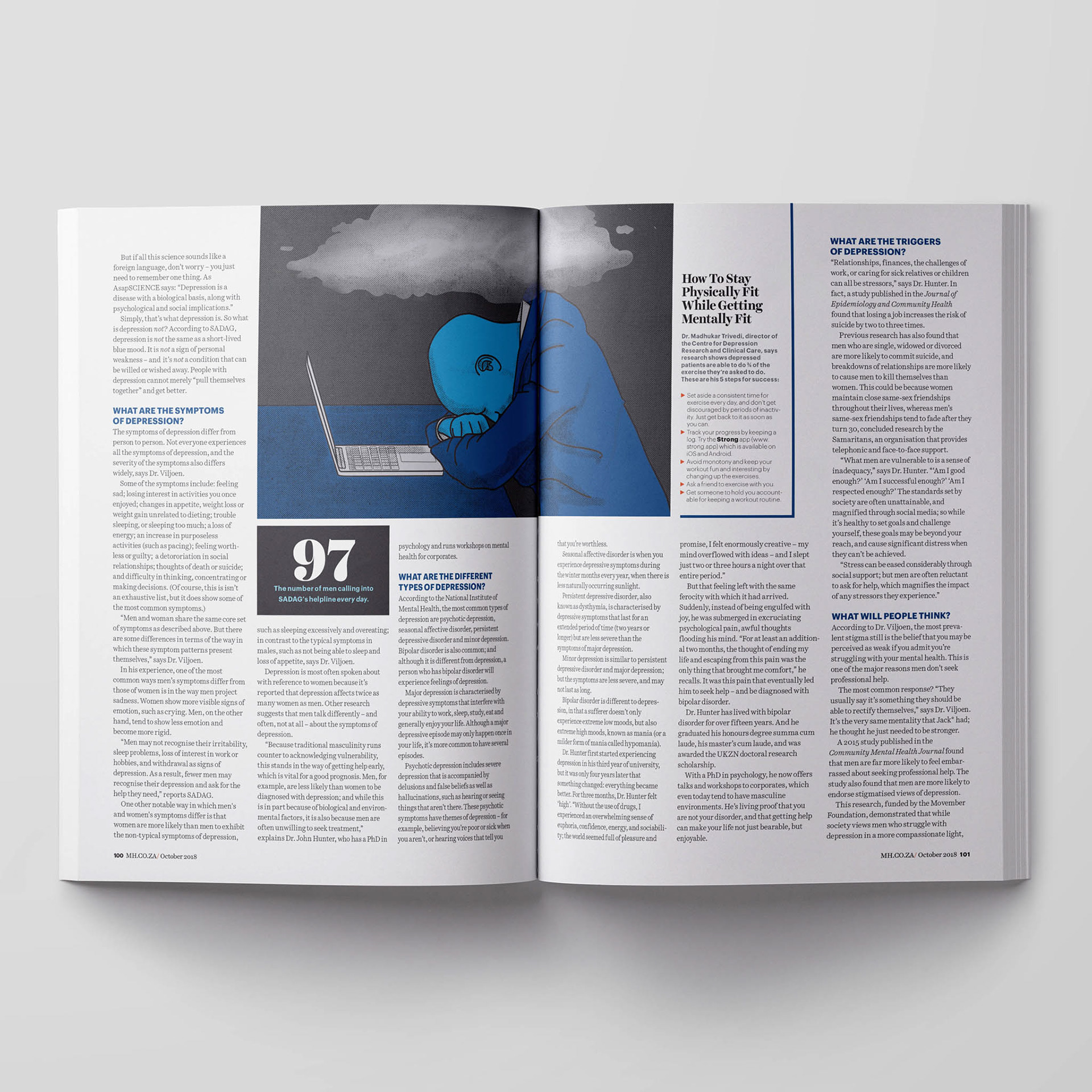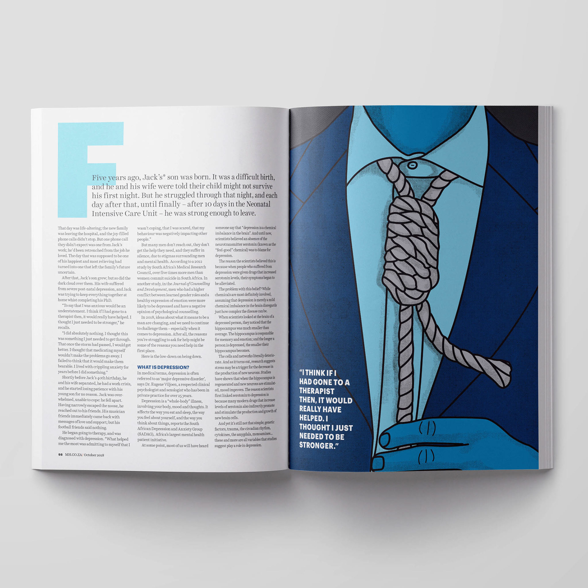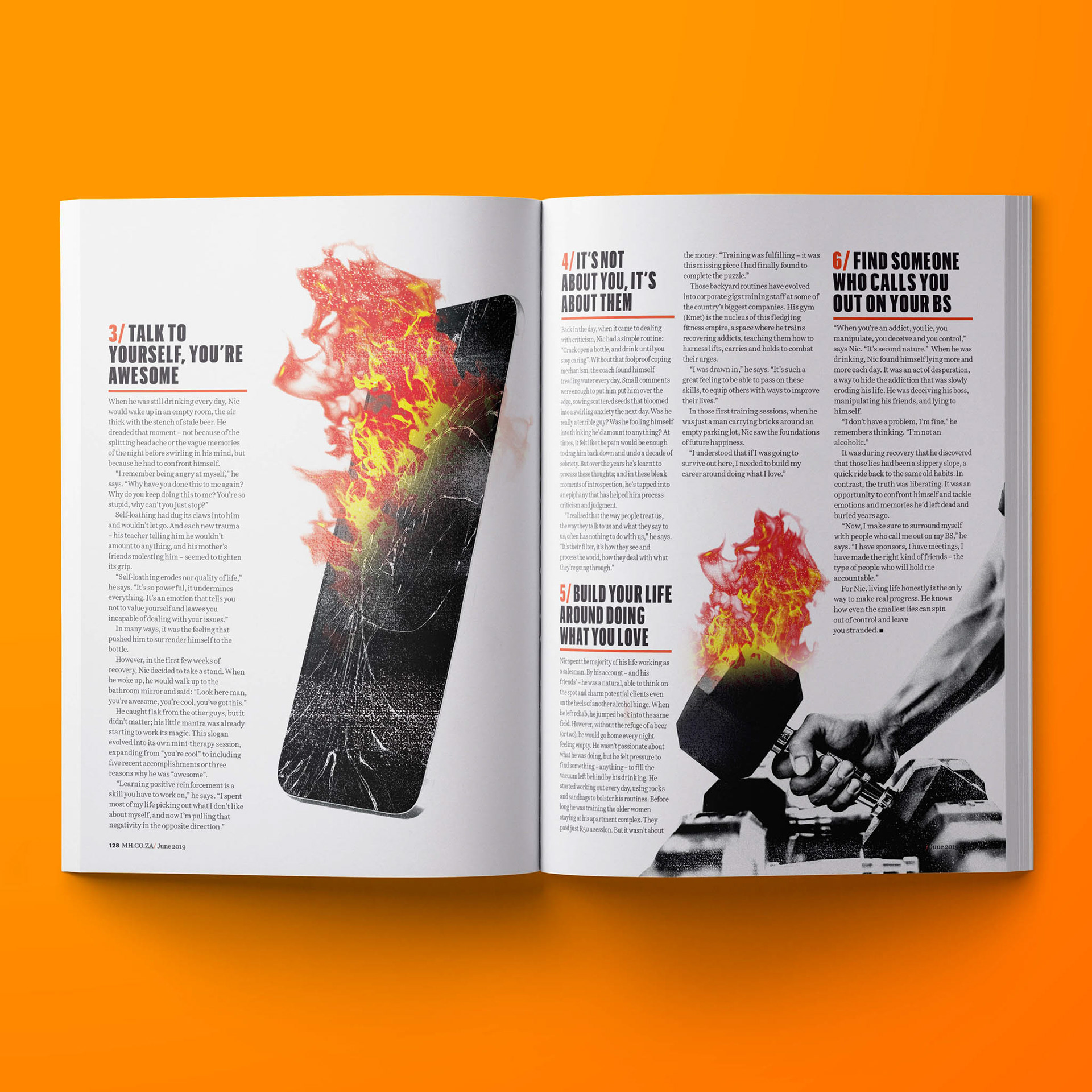 I worked as the Art Director for Men's Health South Africa during 2018 and 2019. A big part of the job was designing layouts of feature articles that were written by local writers. All of the artwork were created from stratch through conceptual illustration or collaborating with a photographer.